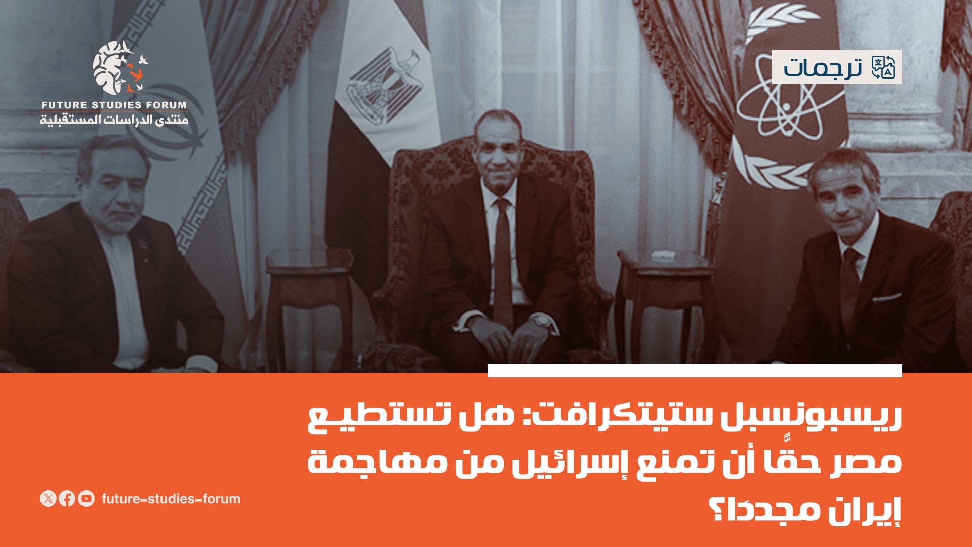 في الثالث والعشرين من أكتوبر 2025م، نشر موقع “ريسبونسبل ستيتكرافت” التابع لمعهد كوينسي للحكم الرشيد (Quincy Institute for Responsible Statecraft) – وهو مؤسسة بحثية أمريكية متخصصة في السياسة الخارجية، والذي تأسس في عام 2019م في واشنطن العاصمة وسُمي على اسم الرئيس الأمريكي الأسبق جون كوينسي آدامز (11 يوليو 1767 – 23 فبراير 1848م) ويُوصَف بأنه يدعو إلى الواقعية وضبط النفس في السياسة الخارجية – مقالًا تحليليًّا بعنوان: “هل تستطيع مصر حقًّا أن تمنع إسرائيل من مهاجمة إيران مجددًا؟”