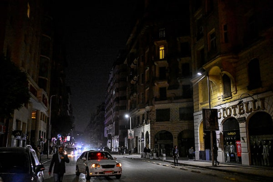 (بعض الناس وهم يمرونّ أمام متاجر أغلقت أبوابها مبكرًا امتثالًا لقرار الحظر الذي فرضته الحكومة في وسط القاهرة يوم 2 أبريل 2026. وكانت الحكومة المصرية قد أصدرت أوامر بإغلاق المتاجر والمطاعم والمراكز التجارية بحلول الساعة التاسعة مساءً، أملًا في خفض فواتير الطاقة التي تضاعفت أكثر من مرتين بسبب الحرب مع إيران: خالد دسوقي/وكالة فرانس برس/ Getty Images)