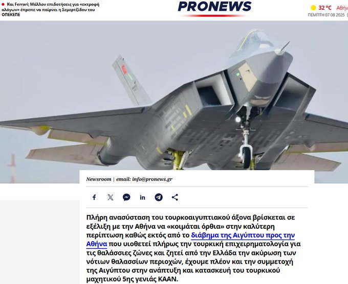 وذكر أن “انضمام مصر إلى برنامج الطائرة الحربية التركية من الجيل الخامس “KAAN” يجب أن يثير قلق أثينا”.