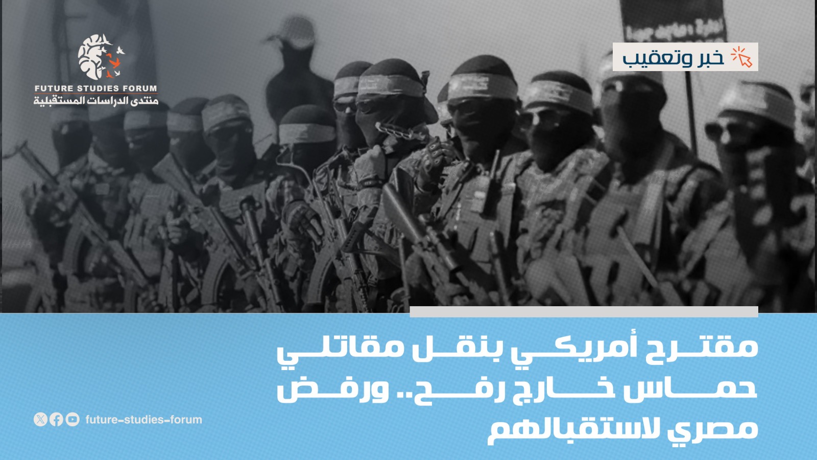 نقلت صحيفة “العربي الجديد“، في 10 نوفمبر 2025م، عن مصدر مصري رفيع أن مصر ترفض سيناريو نقل مسلحي حماس إلى أراضيها لاعتبارات أمنية وإستراتيجية تتعلق بأمن سيناء واستقرار الحدود.